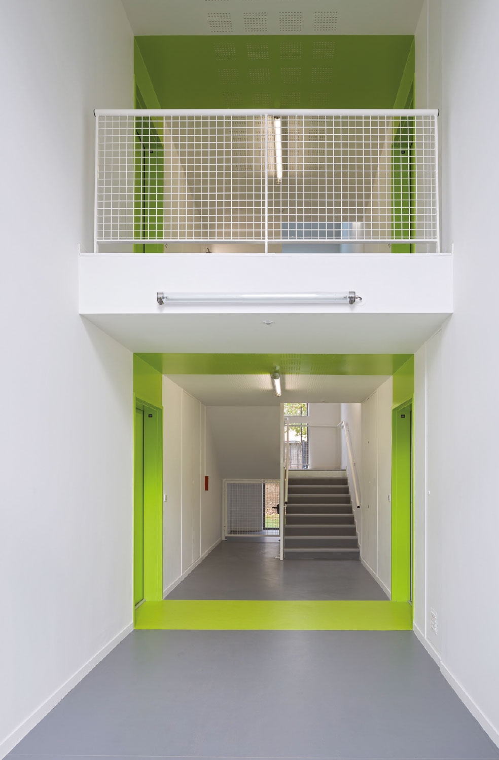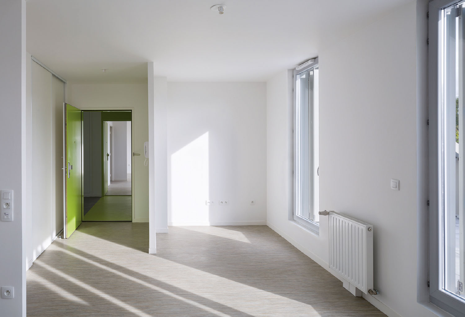 Le principe de l’ossature acier a conduit à une conception modulaire (une base unique de T3 sur laquelle se greffent des volumes de chambres pour augmenter la typologie), optimisant la fabrication en atelier et le chantier.