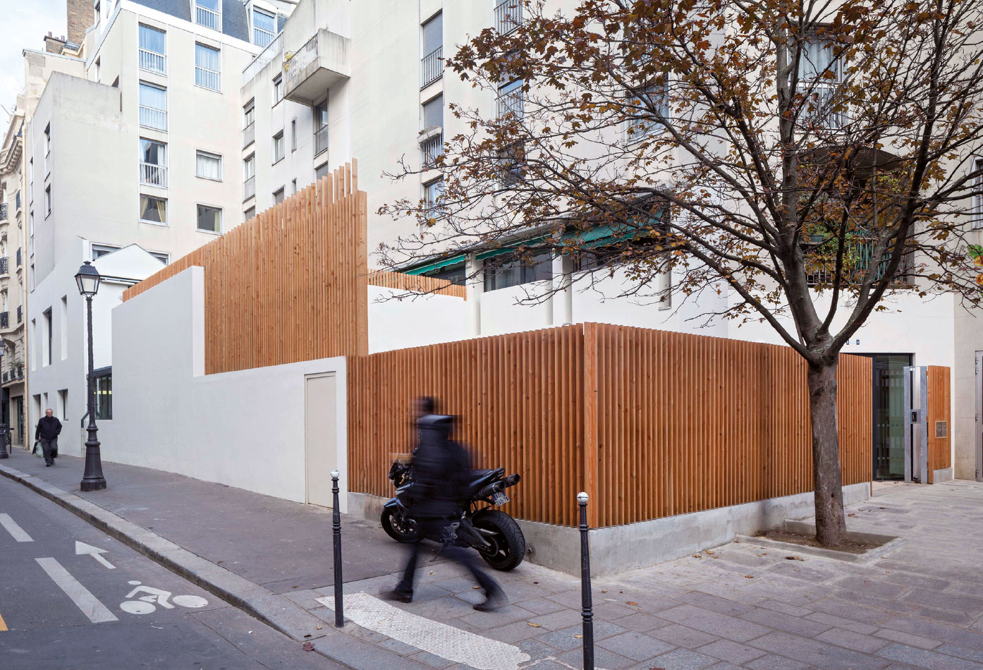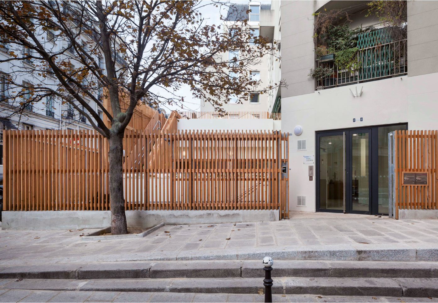 Le travail sur la clôture redéfinit le rapport du socle à l’espace public et procure l’identité.