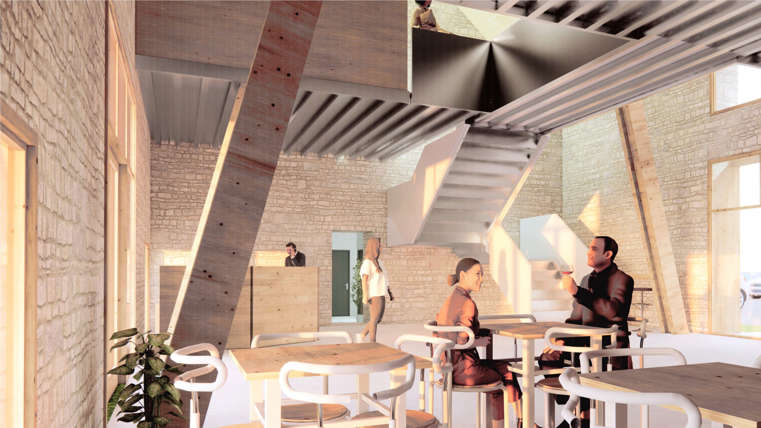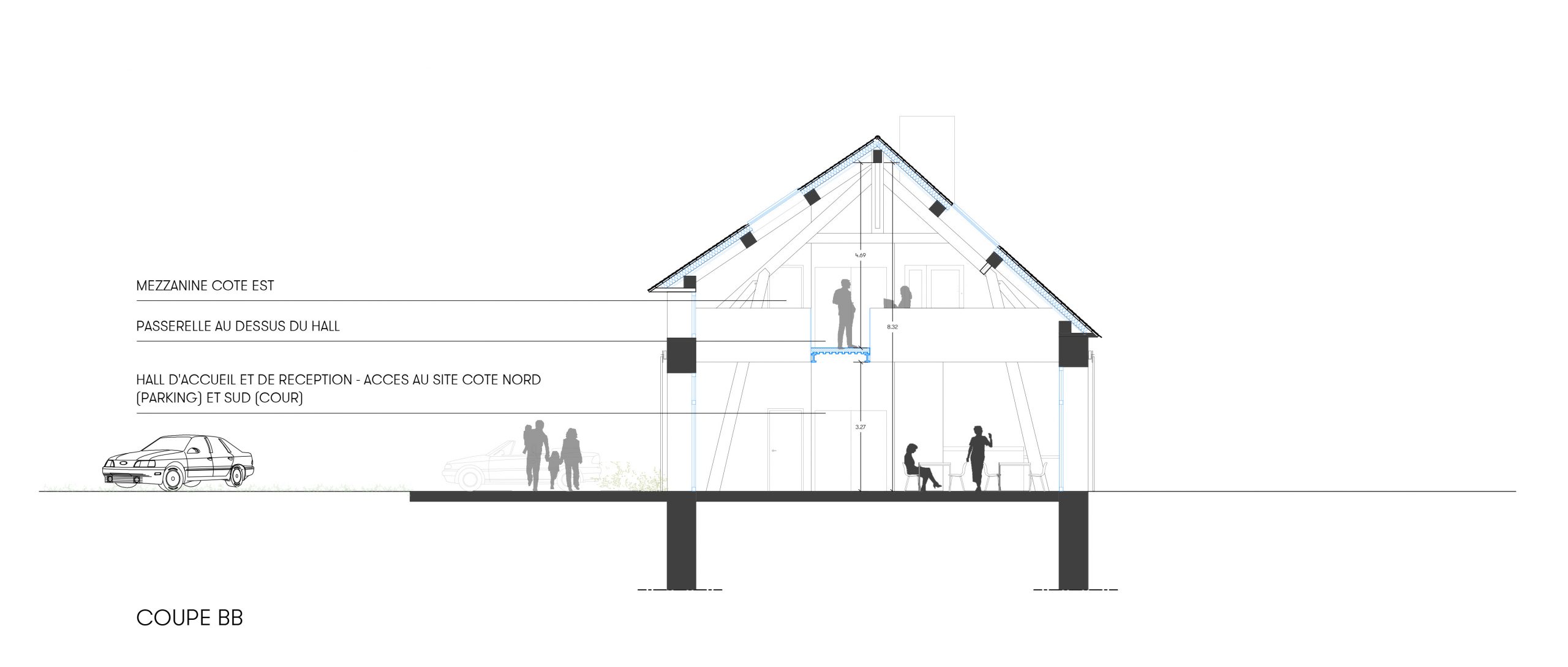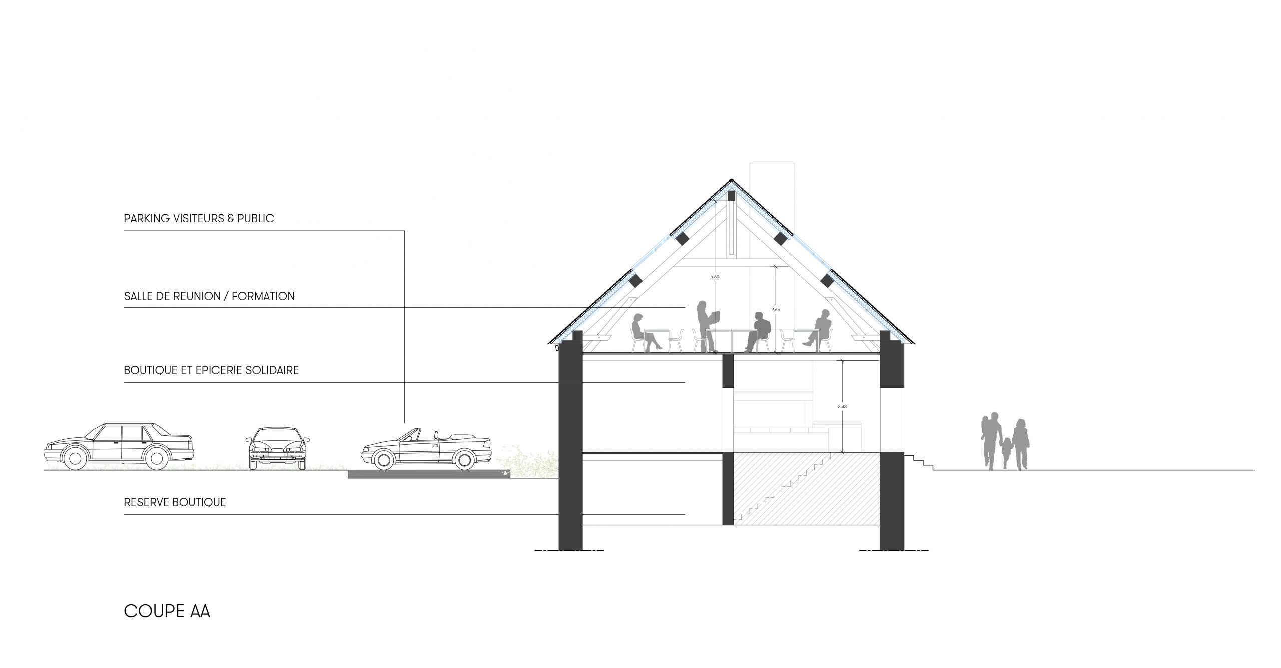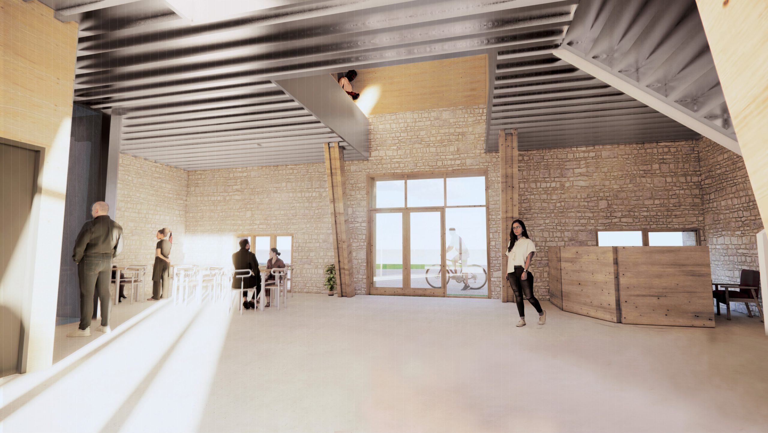 Transformation d’une grange en un lieu social & solidaire, accueillant des salles de formation, une pépinière d’artisanat local, des bureaux à la location, un espace de vente de produits locaux d’agriculture biologique, une épicerie solidaire, une boulangerie bio (restauration d’un four à pain existant), et un espace de restauration rapide avec des produits locaux.