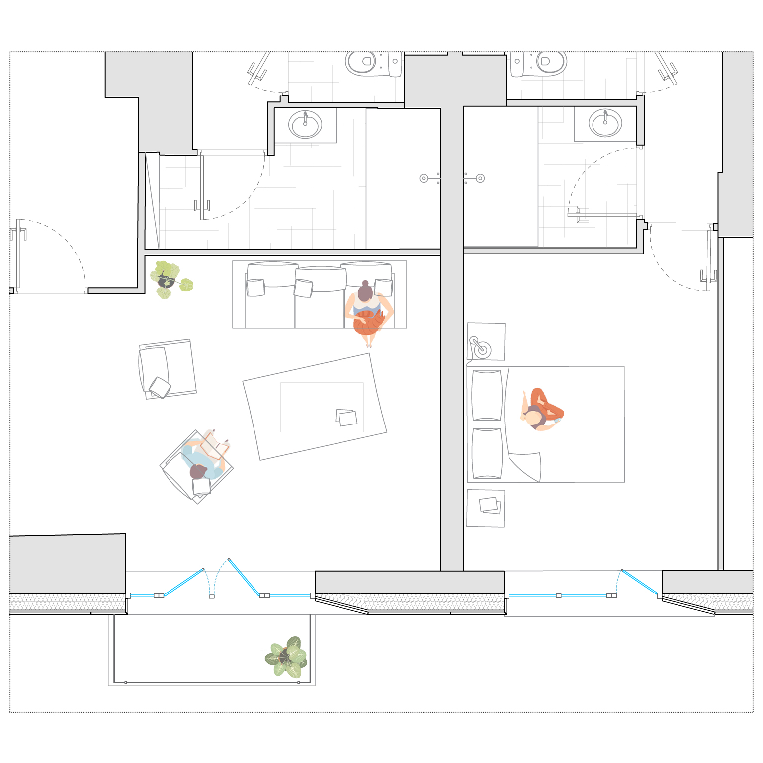 Réhabilitation Plan Climat en milieu habité d’un ensemble de 69 logements, une loge et un local d’activité, répartis en 3 immeubles.